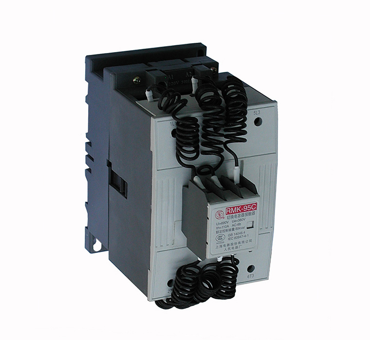 RMK-25C~RMK-95C系列切換電容器接觸器(以下簡稱接觸器)。 該接觸器用于交流50Hz、 額定電壓為380V電路中接通和分斷電容器組, 以調整用電系統的功率因數。 接觸器應具有抑制浪涌電流的能力, 使接通時的浪涌電流峰值不大于額定工作電流的20倍, 其中RMK-75C、 RMK-95C接通時的浪涌電流峰值不大于額定工作電流的30倍。
